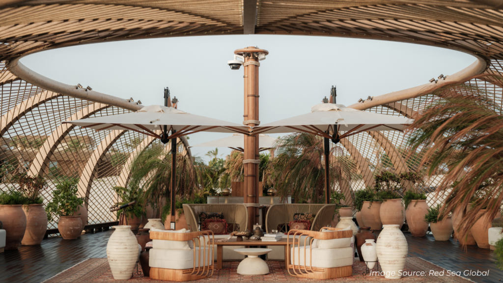The project stretches across a vast area of Saudi Arabia’s western coastline and includes islands, beaches, desert land, and mountain scenery. By 2030, plans include more than 50 hotels, around 8,000 hotel rooms, and over 1,000 residential properties.