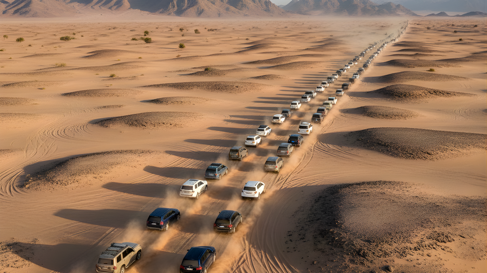 According to the official Saudi tourism site Visit Saudi, the convoy is expected to include 600 to 700 off-road vehicles forming a continuous line over a course of roughly seven kilometres. The event is intended to showcase the capability of these vehicles and highlight off-road driving as a recreational and competitive pursuit in the Kingdom.